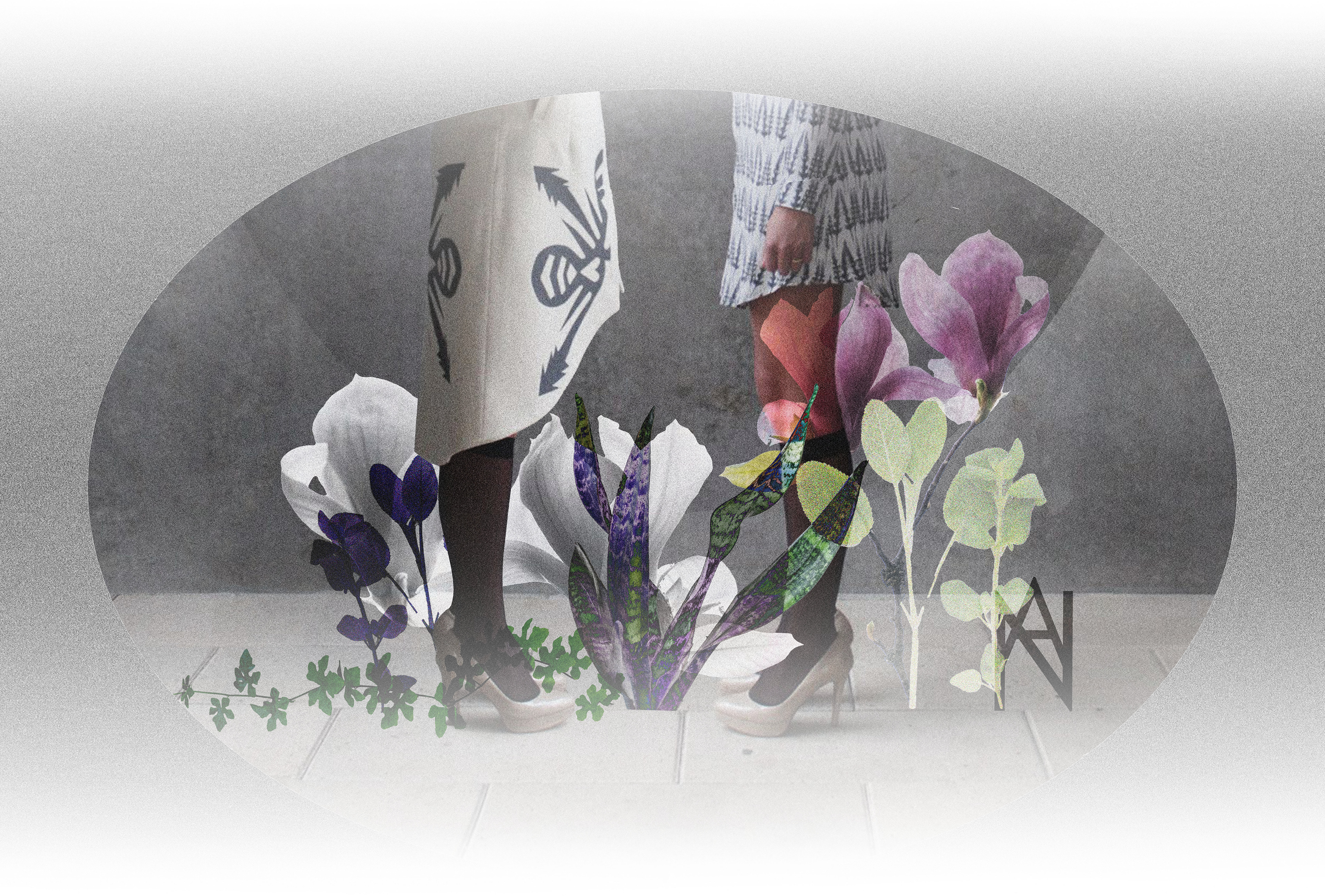 // The collage above is composited of 2 pictures of a model wearing clothing I made (designed, constructed and sewn) for my final BA Fashion Design exam back in late 2015. This is actually the same LOOK, since the silk shirt dress was created to be warn under the white woollen coat. I collaged in model with the coat into the picture with the model wearing the dress, added pictures sourced from Adobe Stock and eventually styled poster with some graphic elements, light tuning and noise. //